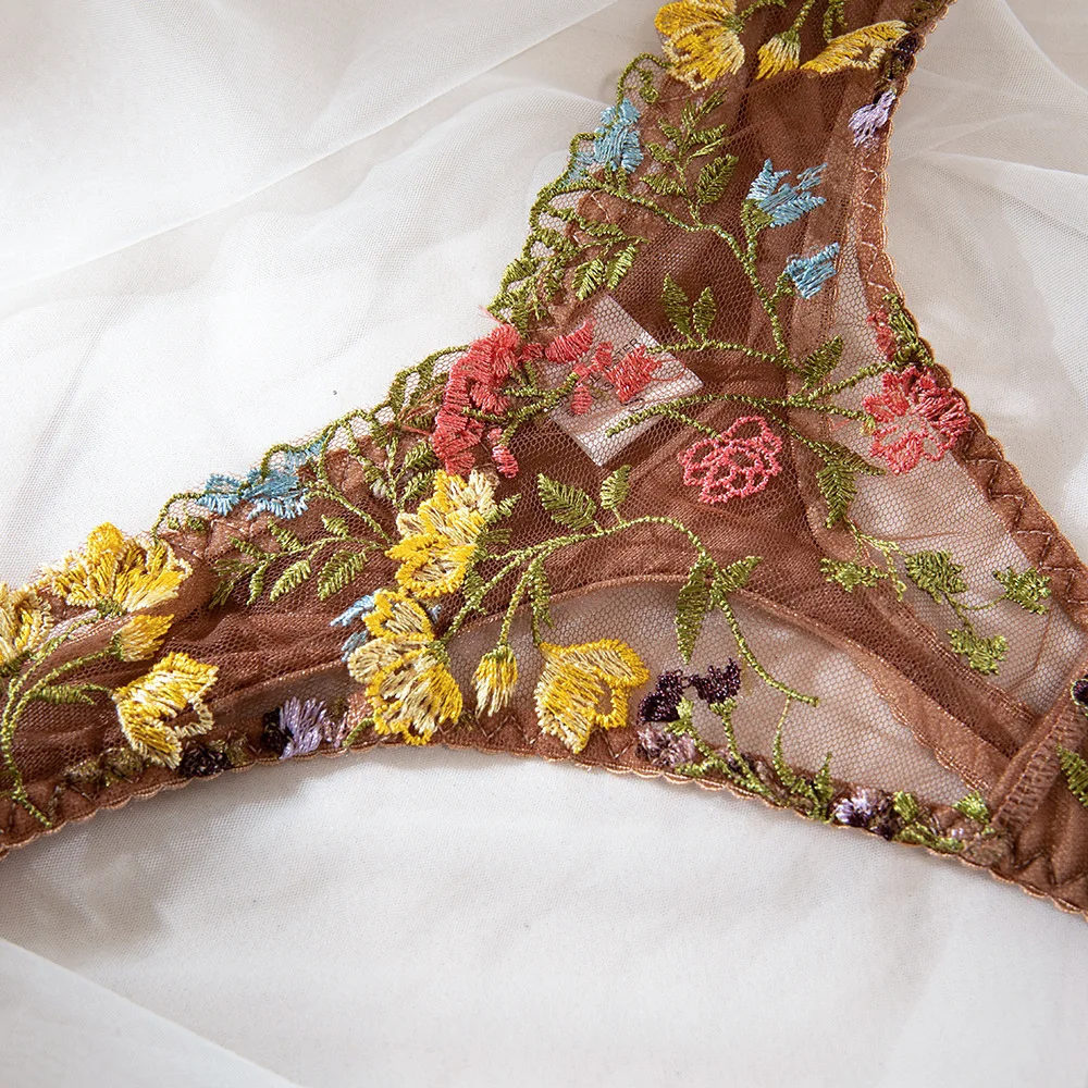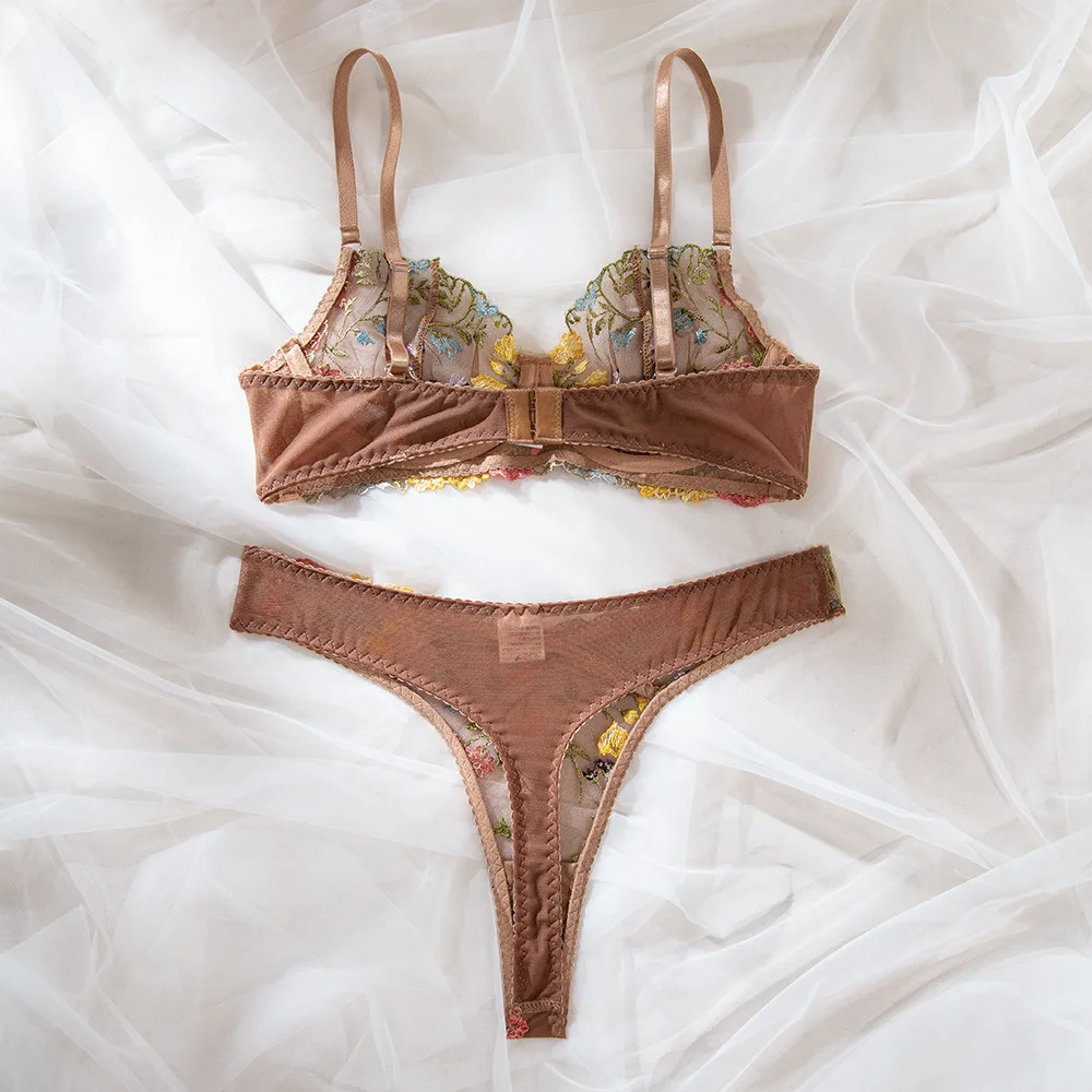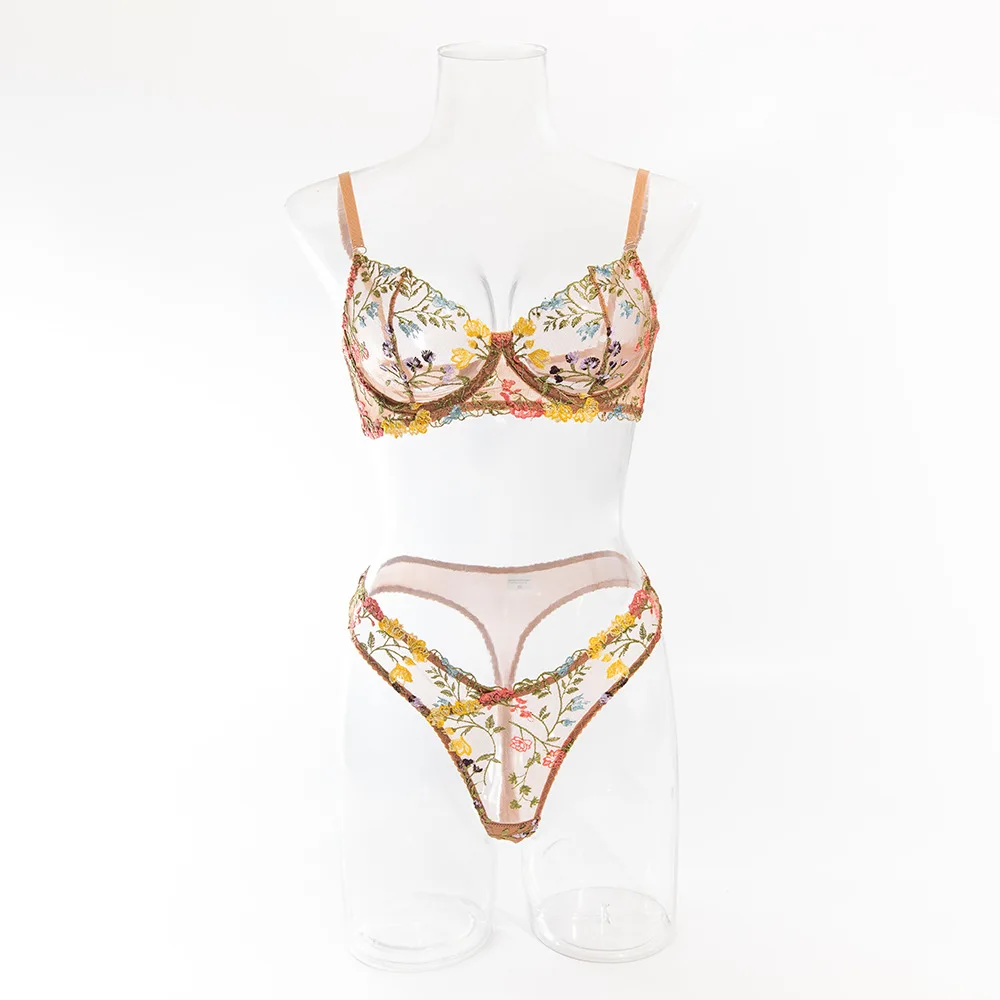 Bra Set Floral two-piece set with perspective Women sets underwear without censo