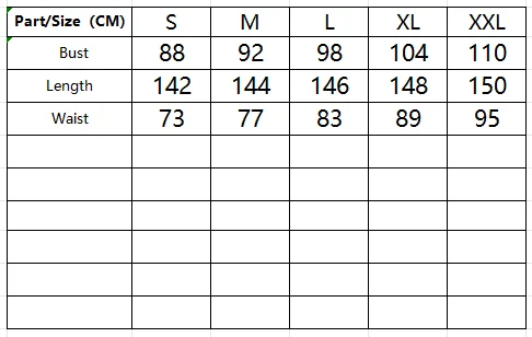 size_info: {"sizeInfoList":[{"length":{"cm":"142","inch":"55.91"},"size":"S","vid":100014064},{"length":{"cm":"144","inch":"56.69"},"size":"M","vid":361386},{"length":{"cm":"146","inch":"57.48"},"size":"L","vid":361385},{"length":{"cm":"148","inch":"58.27"},"size":"XL","vid":100014065},{"length":{"cm":"150","inch":"59.06"},"size":"XXL","vid":4182}]}